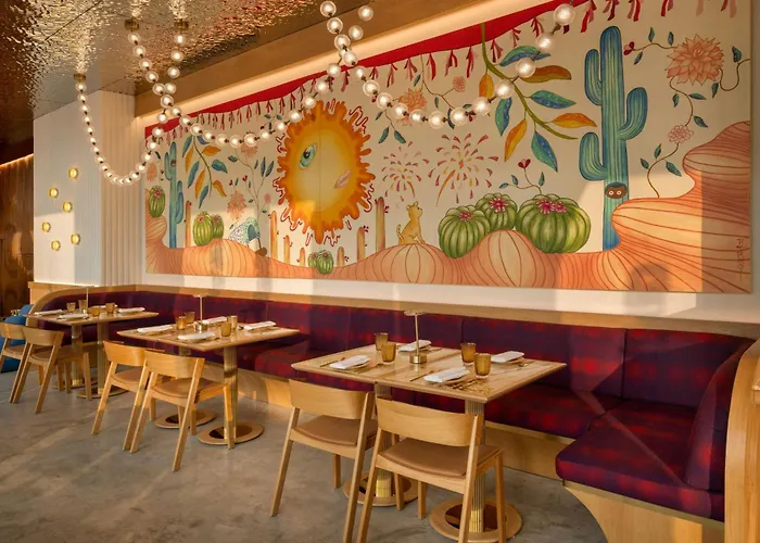 Ресторан Sajangoth, где подают вкусную еду и напитки, расположен в 5 минутах неспешного шага от отеля Moxy.